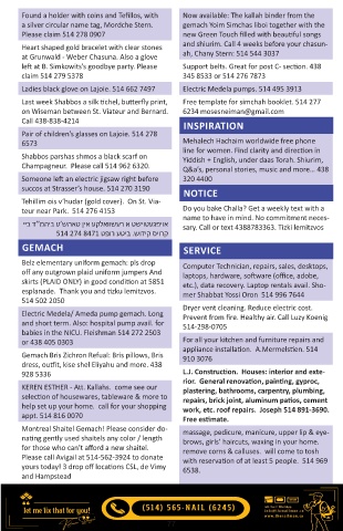 Montreal Shaitel Gemach! Please consider do- massage, pedicure, manicure, upper lip & eye-