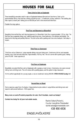 Three beautifully renovated units for sale on Esplanade between Bernard and Van-Horne. Each unit is