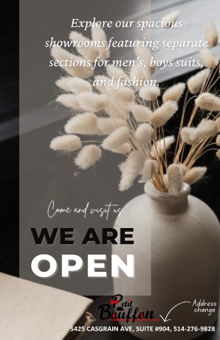 Come and visit us Come and visit us WE ARE WE ARE OPEN OPEN Address change 5425 CASGRAIN AVE, SUITE #904, 514-276-9828 47