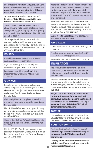 much more…Forever- 514 272 3860 Please call Avigail at 514-562-3924 to donate