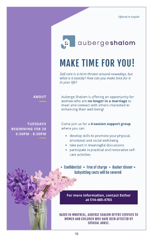 BASED IN MONTREAL, AUBERGE SHALOM OFFERS SERVICES TO