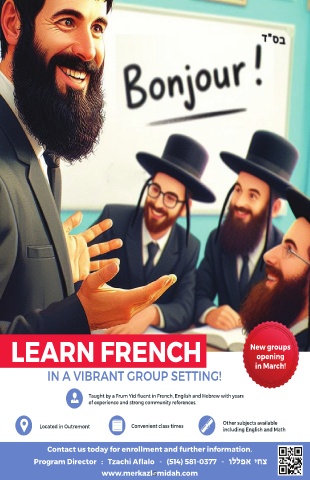 Taught by a Frum Yid fluent in French, English and Hebrew with years