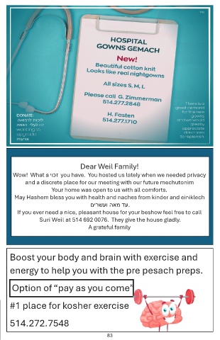 shuls. For booking & info call 514.274.4270 or