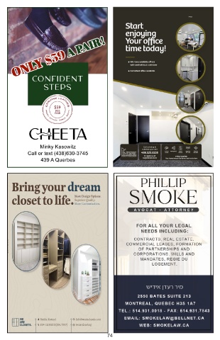 ● We have available offices rental. 59/16th ave $125/night. 718.435.2248 Lower duplex in St-Laurent, next to kollel. 3