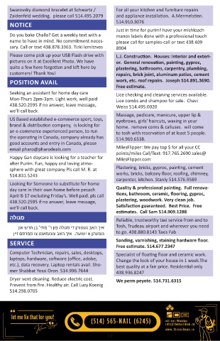sary. Call or text 438.878.3363. Tizki lemitzvos 8904