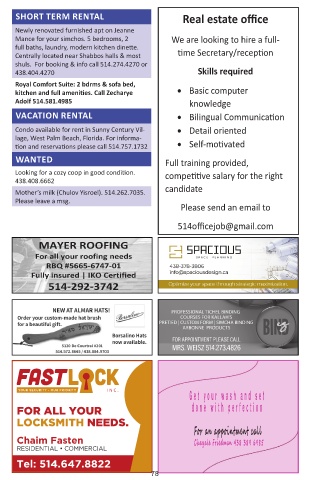shuls. For booking & info call 514.274.4270 or