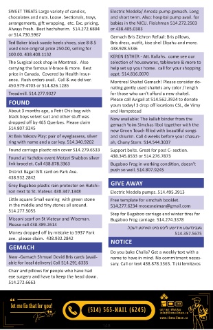 able for local delivery) Call 514.291.6335 sary. Call or text 438.878.3363. Tizki lemitzvos
