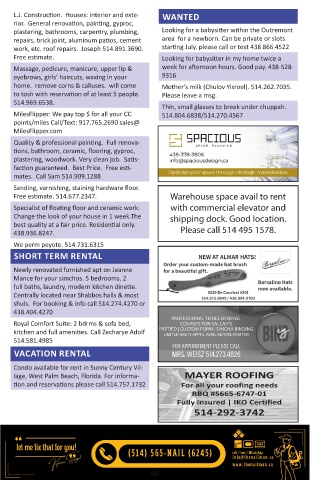 work, etc. roof repairs. Joseph 514.891.3690. starting July. please call or text 438 866 4522