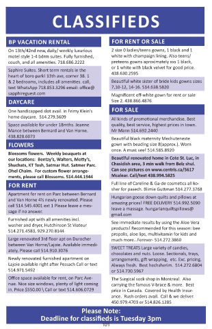 Deadline for classifieds is Tuesday 3pm