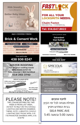 טימ סנעירעפסקע עטוג א רעייז טאהעג באה Andre work, etc. roof repairs. Joseph 514.891.3690. THE LCHAIM DISTRIBUTED THIS ץיקה ימי לכל החנמ תליפת