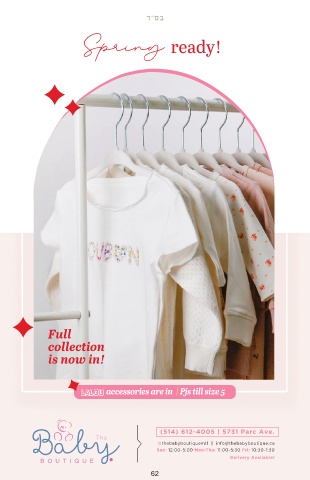 Spring ready! Full collection is now in! accessories are in | Pjs till size 5 (514) 612-4005 | 5731 Parc Ave. thebabyboutiquemtl | info@thebabyboutique.ca Sun: 12:00-5:00 Mon-Thu: 11:00-5:30 Fri: 10:30-1:30 Delivery Available! 62