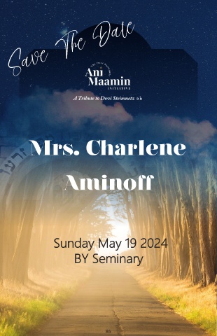 Save The Date A Tribute to Dovi Steinmetz ה’ע Mrs. Charlene Aminoff M 2 a 1 y 9 0 d n S Sunday May 19 2024 u y 4 a 2 y r a S B BY Seminary Y e i n m 85