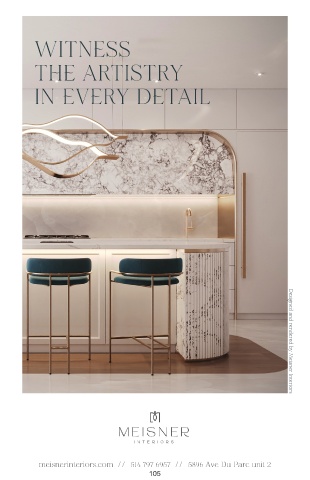 WITNESS THE ARTISTRY IN EVERY DETAIL meisnerinteriors.com / / 514 797 6957 / / 5896 Ave Du Parc unit 2 Designed and rendered by Meisner Interiors 105