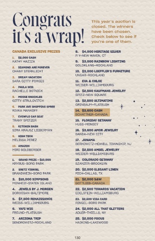 closed. The winners 27. $1,500 LENS CENTER 47. AT HOME WITH MITZVA KINDER