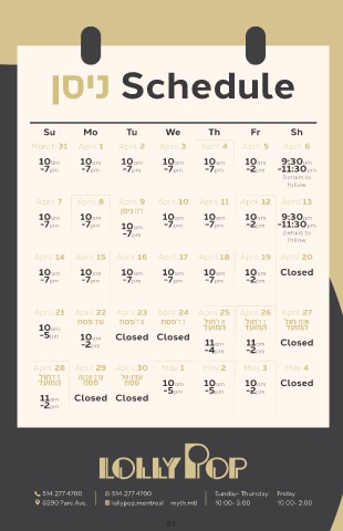 -5pm April 22 Closed Closed לוח'ד א דעומה April 27