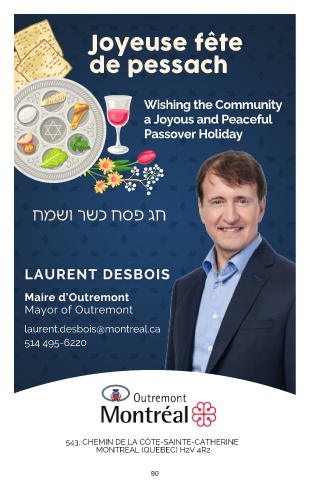 Joyeuse fête de pessach Wishing the Community a Joyous and Peaceful Passover Holiday חמשו רשכ חספ גח laurent.desbois@montreal.ca 514 495-6220 543, CHEMIN DE LA CÔTE-SAINTE-CATHERINE MONTRÉAL (QUÉBEC) H2V 4R2 90