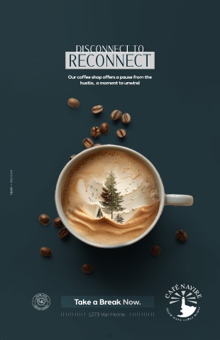 DISCONNECT TO RECONNECT Our coffee shop offers a pause from the hustle, a moment to unwind Take a Break Now. I I I I I I I I I I I 1273 Van Horne IIIIIIIIIII 47