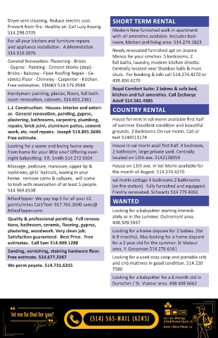 plastering, bathrooms, carpentry, plumbing, House for rent In val morin available first half