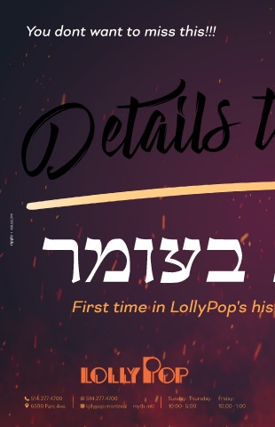 You dont want to miss this!!! Details to follow רמועב גל First time in LollyPop's history!!! 52