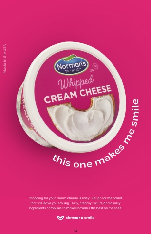 Made in the USA Shopping for your cream cheese is easy: Just go for the brand that will leave you smiling. Fluffy, creamy texture and quality ingredients combines to make Norman's the best on the shelf. shmear a smile 14