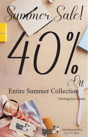 Summer Sale! 40% Off Entire Summer Collection *Starting this sunday 1046 Bernard West 514-271-9022 36