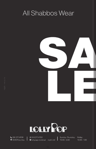 All Shabbos Wear Starting June 2 SA 35 LE% OFF Some exceptions may apply 60
