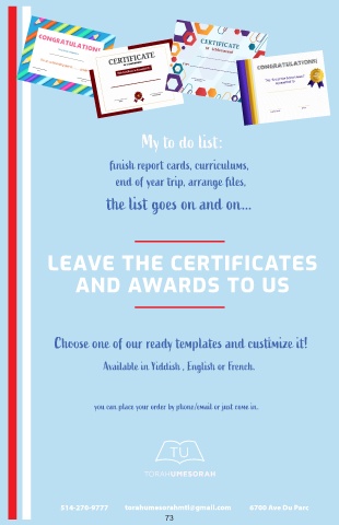 514-270-9777 torahumesorahmtl@gmail.com 6700 Ave Du Parc