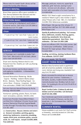 Please note the Jewish Youth Library will be Massage, pedicure, manicure, upper lip &