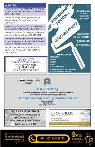 for the summer. Please call 514.273.5454