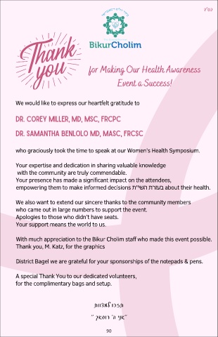 With much appreciation to the Bikur Cholim staff who made this event possible.