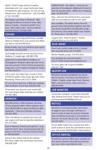 450.979.4703 or 514.826.1285 and shiurim. Call 4 weeks before your chasun-