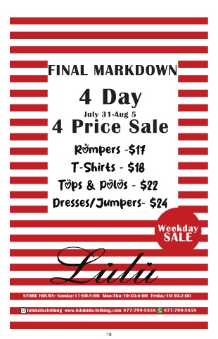 STORE HOURS: Sunday:11:00-5:00 Mon-Thu:10:30-6:00 Friday:10:30-2:00