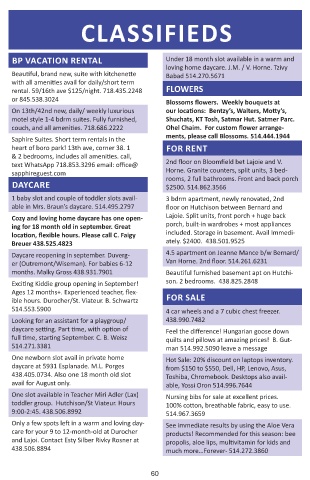 Exciting Kiddie group opening in September! son. 2 bedrooms. 438.825.2848 and short term. Also: hospital pump avail. for advance. For more info pls call L. Teitelbaum