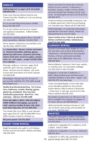 and appliance installation. A.Mermelstien. available for short term rentals. Please call