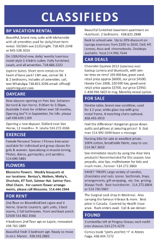 New daycare opening on Parc Ave. between FOR SALE Gemach Bris Zichron Refual: Bris pillows, care. Well paid. Flexible hours. 514.629.6873