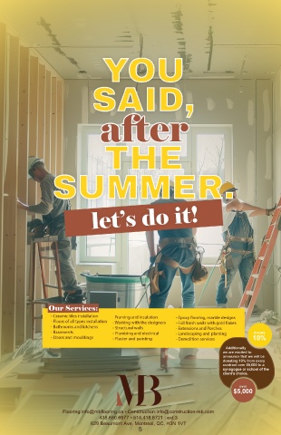 after let’s do it! Our Services: Flooring:info@mbflooring.ca • Construction:info@construction-mb.com 438.680.6977 • 514.418.6721 | ext.3 629 Beaumont Ave, Montreal, QC, H3N 1V7 5