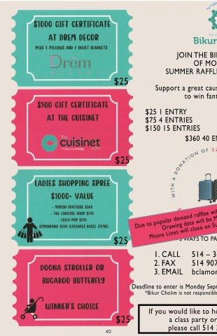 *Bikur Cholim is not responsible for any lost or late entries