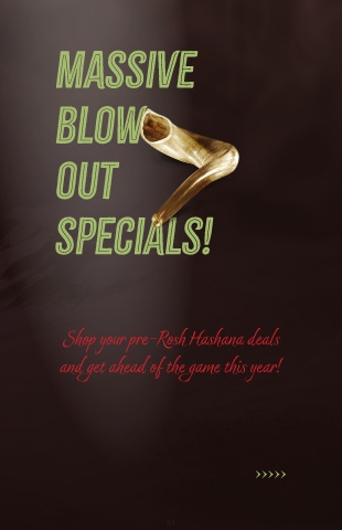 Massive blow- out specials! Shop your pre-Rosh Hashana deals and get ahead of the game this year! >>>>> 51