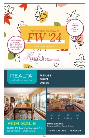 3 2 1 710 pc 2 FOR SALE Rola Zakaria Residential Real Estate Broker 6300, Pl. Northcrest app.1E Sanctuaire - 998 000$ T 514 236 3661 | realta.ca 94