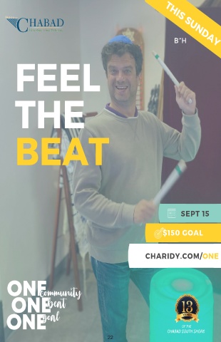 B”H THIS SUNDAY FEEL THE BEAT SEPT 15 $150 GOAL CHARIDY.COM/ONE Of The Chabad South Shore 22
