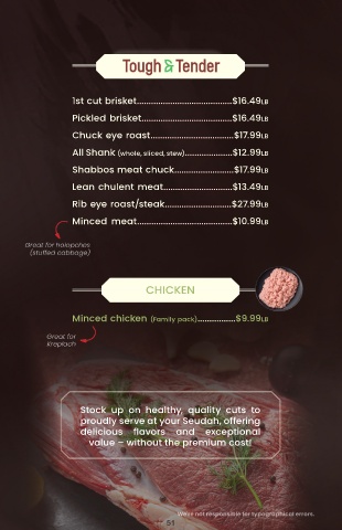 Lean chulent meat.............................$13.49LB