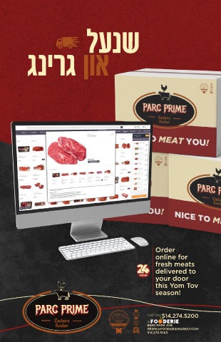 לענש גנירג ןוא Order online for fresh meats delivered to your door this Yom Tov season! Call/Text 514.274.5200 At: 6680 PARK AVE PRIME@FOODERIEMARKET.COM 514.279.3663 59