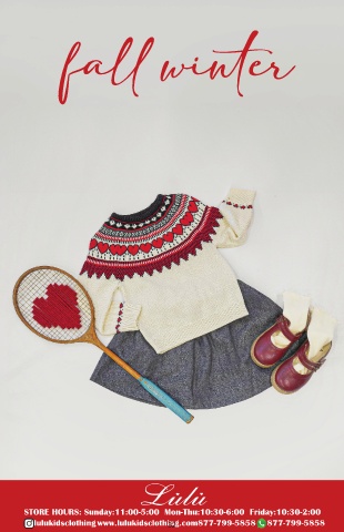 fa wi er STORE HOURS: Sunday:11:00-5:00 Mon-Thu:10:30-6:00 Friday:10:30-2:00 lulukidsclothing www.lulukidsclothing.com877-799-5858 877-799-5858 32