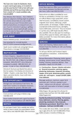 call 438.680.2853 week. 438.499.3254 a spare coat to give away, or in need of a Brand New spacious office space available on