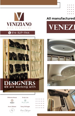 All manufactured by Veneziano Furniture 514-327-1144 Designers we are working with Shlome Kraus Sruly Lax Aron Misner Fany Ettinger 16