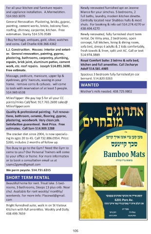 and appliance installation. A.Mermelstien. Mance for your simchos. 5 bedrooms, 2