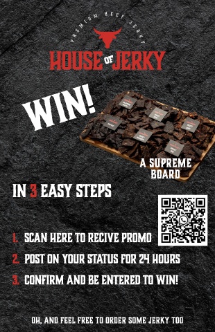 win! a supreme NET WT. 100 GRAMS board in 3 easy steps 1. scan here to recive promo 2. post on your status for 24 hours 3. confirm and be entered to win! order here Oh, and feel free to order some jerky too 37 514.916.9362