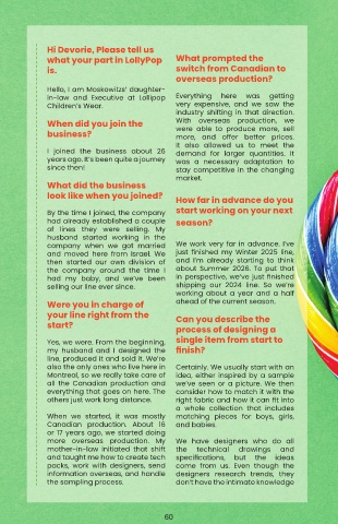 more overseas production. My We have designers who do all well. Our philosophy is that there’s Moskowitz’s