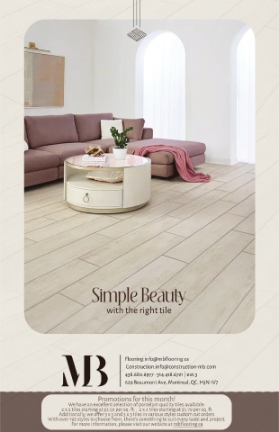 with the right tile Flooring:info@mbblooring.ca Construction:info@construction-mb.com 438.680.6977 • 514.418.6721 | ext.3 629 Beaumont Ave, Montreal, QC, H3N 1V7