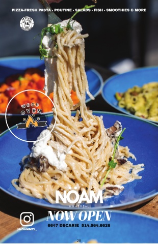 PIZZA-FRESH PASTA - POUTINE - SALADS - FISH - SMOOTHIES & MORE NOW OPEN 6647 DECARIE 514.564.6626 @NOAMMTL_ 28